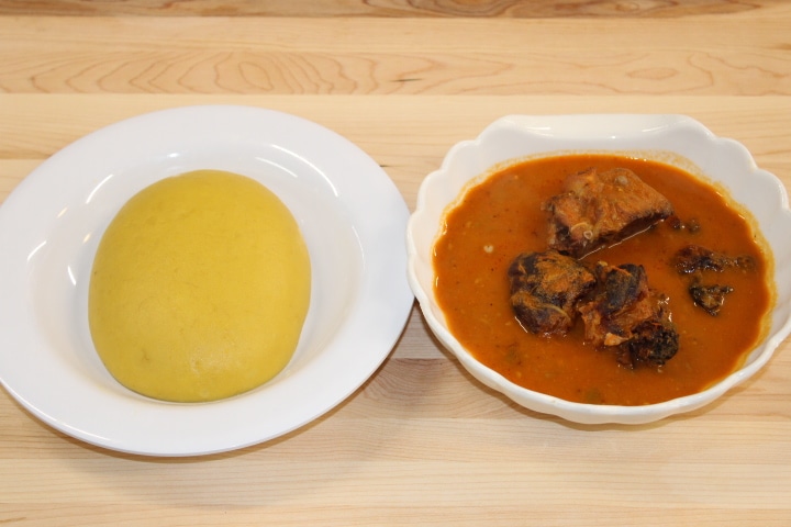 Devenu populaire récemment via les réseaux sociaux, le foutou est une spécialité africaine emblématique, aussi délicieuse qu’amusante à manger. Composée de manioc et de bananes plantains cuits à la vapeur puis écrasés jusqu’à obtenir une pâte bien lisse, ce plat riche et savoureux se savoure accompagné d’une généreuse dose de sauce.