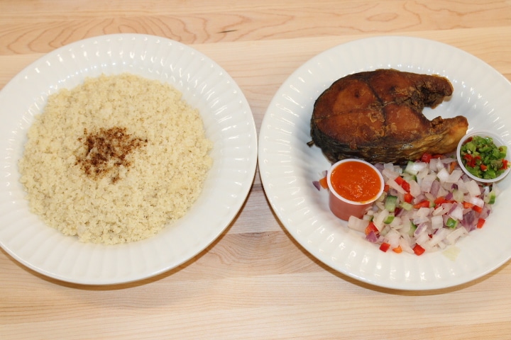 Le garba est apprécié pour sa texture délicieusement moelleuse et sa saveur à la fois douce et légèrement acidulée. Ce plat africain, composé de farine de manioc, prend la forme de délicieuses petites boules de pâte cuites à la vapeur et accompagnées de sauce.